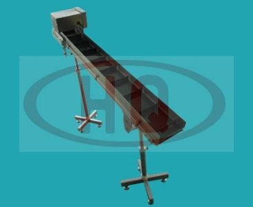 使用34mm鋁合金型材支架,皮帶傳送、驅(qū)動(dòng)。皮帶表面帶30mm高的擋板,可以進(jìn)行傾斜提升搬運(yùn)物品,適合搬運(yùn)形狀不規(guī)則的物品。標(biāo)準(zhǔn)配置含護(hù)欄。可以根據(jù)需要將驅(qū)動(dòng)部安裝到上部或下部。