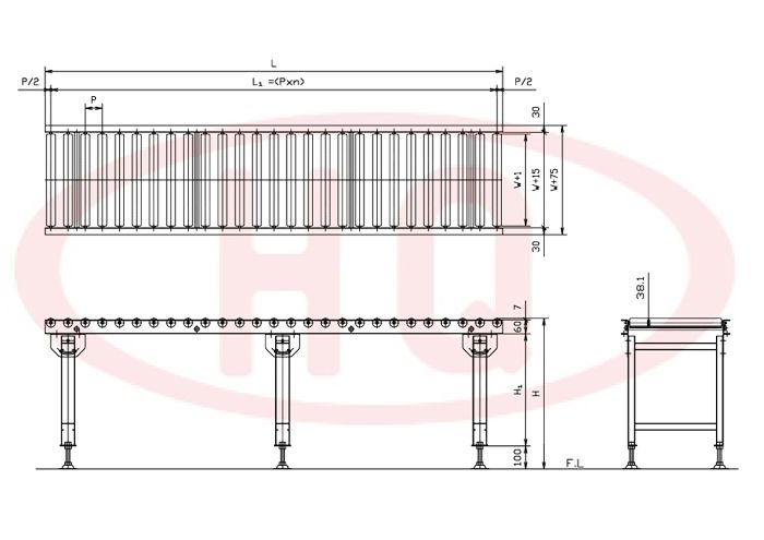 | 輸送機幅寬 W+75 (mm) | 175 | 275 | 375 | 475 | 575 | 675 | 775 | 875 | 975 | 1,075 | |||