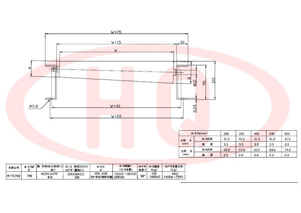 | R-TC700 | 小徑 A (mm) | 滾 筒 外 徑 | 41.3 | 41.3 | 41.3 | 41.3 | 41.3 | |